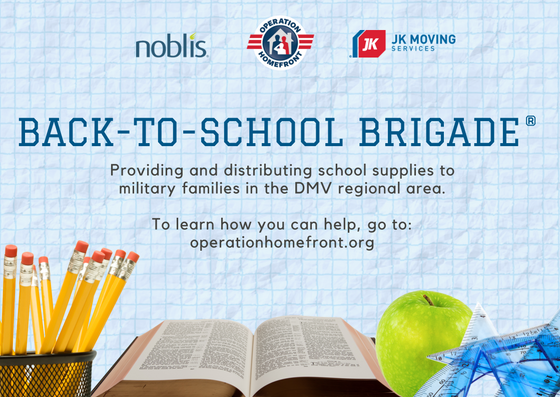We’re happy to have the opportunity to work with Noblis to support Operation Homefront in their annual Back-to-School Brigade, a nationwide school supply collection campaign to provide backpacks filled with school supplies to military kids. Last year, Operation Homefront distributed more than 41,000 backpacks to families throughout the U.S.