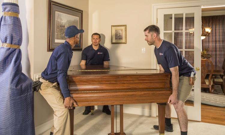 Depending on the size of the piano, up to 4 to 6 movers will assist in relocating it. Some will help guide the rest of the crew as they move the body through the house. The piano is reassembled when it arrives at the destination. Because pianos need regular tuning to stay in pitch, we recommend you tune your piano after each move.